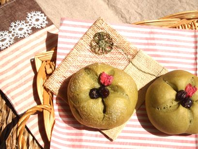 抹茶のシンプルなパンなので、行楽に持ち歩いても痛みにくいですよ〜♪ヽ(*^^*)ノ♪