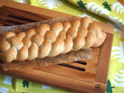 <6月の単発レッスン>バジルツオップは、バジルの香りが楽しめる大型パン♪4つ編みパンなので成形も楽しめます(^ー^* )♪