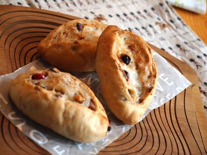 ドライフルーツと数種類のナッツを練り込んだセミハードなパン♪(*^▽^*)♪香ばしい香りと噛み応えがたまりません♪