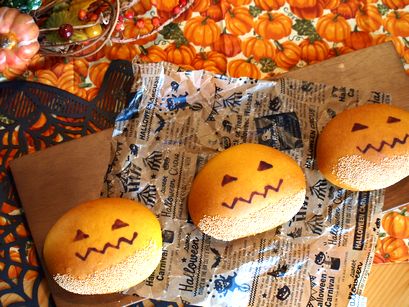 おひげジャックはかぼちゃ生地のハロウィンあんぱん♪ケシの実の無精ひげでダンディジャックに(〃艸〃)!